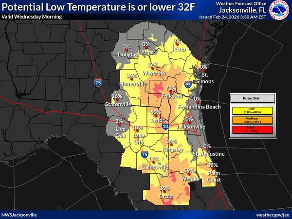 Jacksonville residents are waking up to a dramatic shift in weather this Tuesday, February 24, 2026. After a period of record-breaking warmth that saw temperatures climb into the high 80s over the weekend, a powerful cold front has swept through the region, plunging the city into an arctic chill. The National Weather Service has issued a Freeze Warning for the entire area, remaining in effect until 9:00 a.m. this morning.