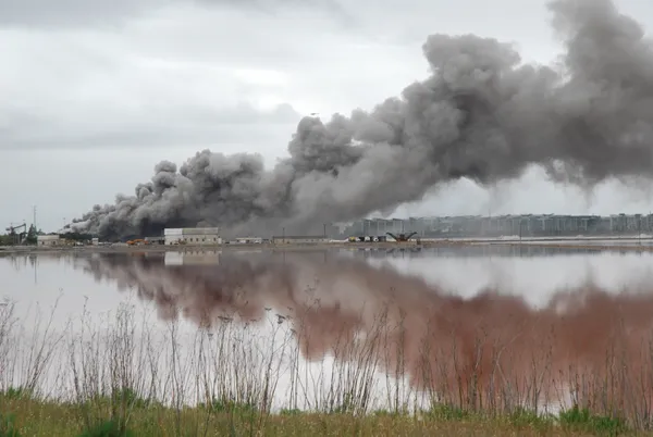 - Smoke conditions and air monitoring can be central concerns in recycling and rubber-related fires.